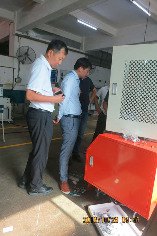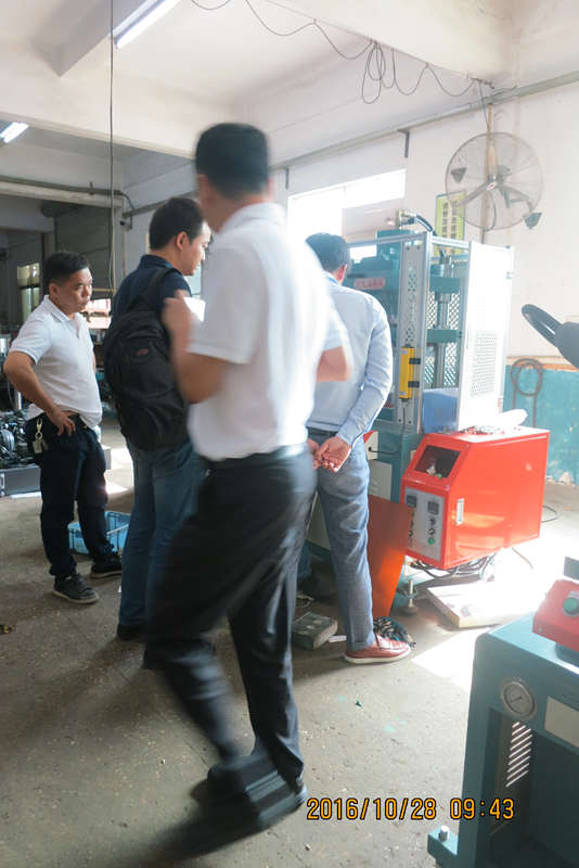 客戶考察圍觀員工測試機械設備